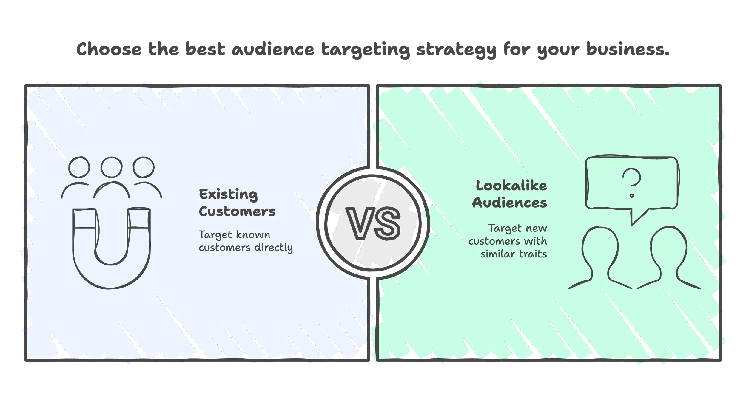Lookalike audiences, built by Meta to target new people who share similar traits to your existing customers — age, interests, buying habits, and more.